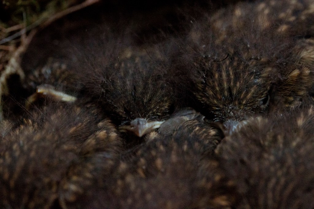 Jag tyckte mig se två små rödhakar i närheten av förrådet där fågelungarna finns. Hör fågelkvitter som har några väldigt höga toner så jag funderar nu på om det kan vara rödhakar som ligger i foppatoffeln…