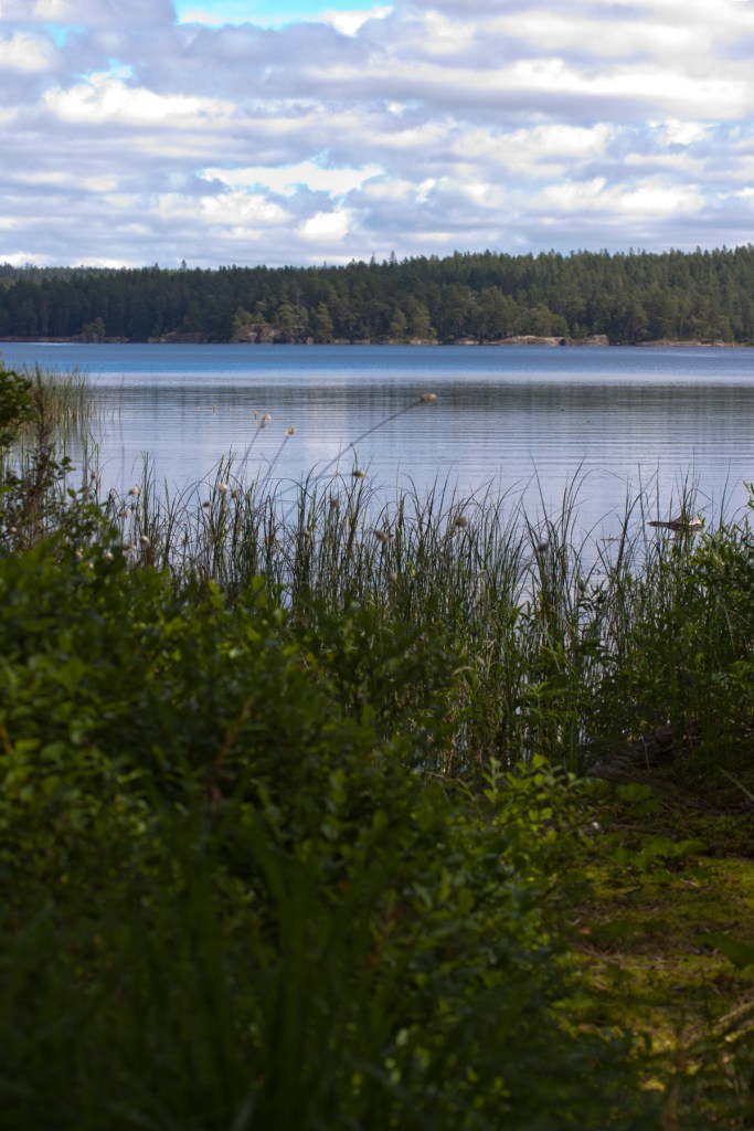 Stannade vid platsen med det passande namnet Käringaudden där jag fick äta min medhavda matsäck och kunde tvätta av såren och doppa fötterna i vattnet.