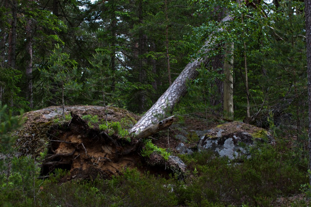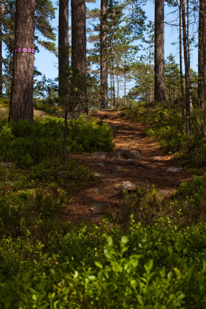 Tallskog, blåbärsris, rötter och klippblock var det som leden bjöd på.